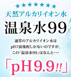 温泉水99は、弱アルカリ性の温泉水です。